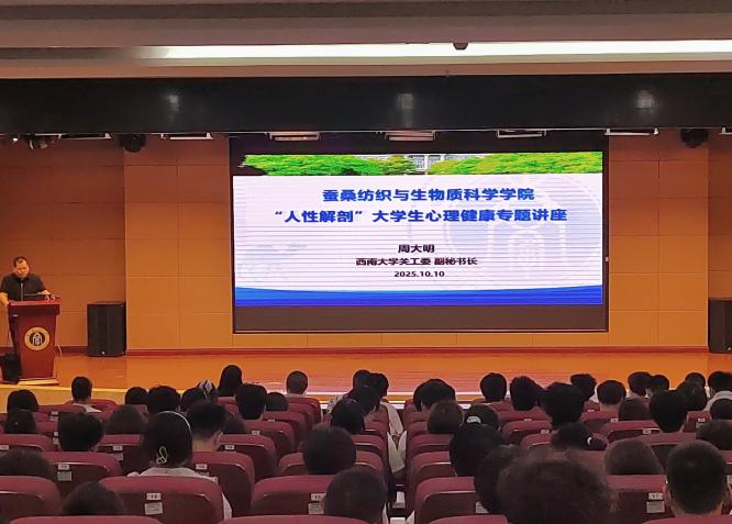 发布时间: 2025-10-16 09:39:06 已阅读:为助力公司员工培养积极心理状态,开启绚烂多彩的老员工活,2025年10月10日下午,公司在隆平楼404报告厅开展了“人性解剖”老员工心理健康专题讲座。本次讲座特邀伟德BV1946官网关工委副秘书长、西大红五老服务团副团长周大明担任主讲嘉宾,集团离退休党委副书记、纪委书记熊伟,公司团委书记鲁萍,新生辅导员冯洁、黄宏佑以及公司2025级全体研究生、本科生聆听了本次讲座。讲座由公司党委副书记朱高峰主持。