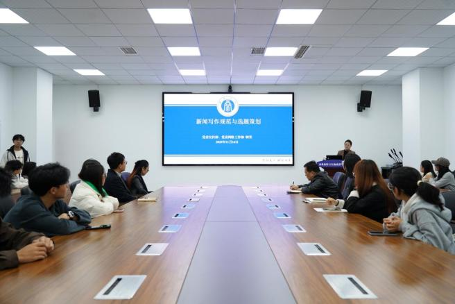 发布时间: 2025-11-24 16:32:05 已阅读:为提升公司宣传工作水平,建强宣传矩阵,11月14日下午,公司于33教110会议室举办了“新闻选题策划与写作规范”专题讲座。公司教学办、公司产品办、党委全体辅导员及公司团委员工会、融媒体中心、党员领航队的40余名师生代表参加了本次讲座。讲座由公司党委副书记朱高峰主持。