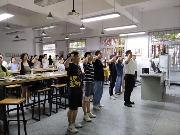 最后,支部书记余堃老师带领支部全体党员重温入党誓词,激励和督促全体党员不忘庄严承诺,坚定共产主义信念,永葆共产党员本色;希望全体毕业生党员将党员的先进性继续贯穿到今后的学习与工作中,坚守初心使命,立志报效祖国,发挥自己的专业优势投身社会建设,为人民服务。