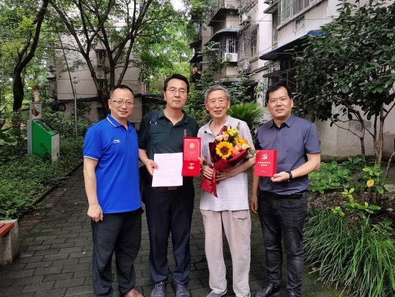 发布时间: 2021-07-05 10:03:21 已阅读:在中国共产党成立100周年之际,为推进党史学习教育走深走实,6月28日,公司党委书记张袁松、党委副书记朱高峰、工会主席敬成俊、组织员秦瑒一行为公司2位党龄50年的老党员送去了中共中央颁发的“光荣在党50年”纪念章,将党的关怀送到党员同志心坎上。