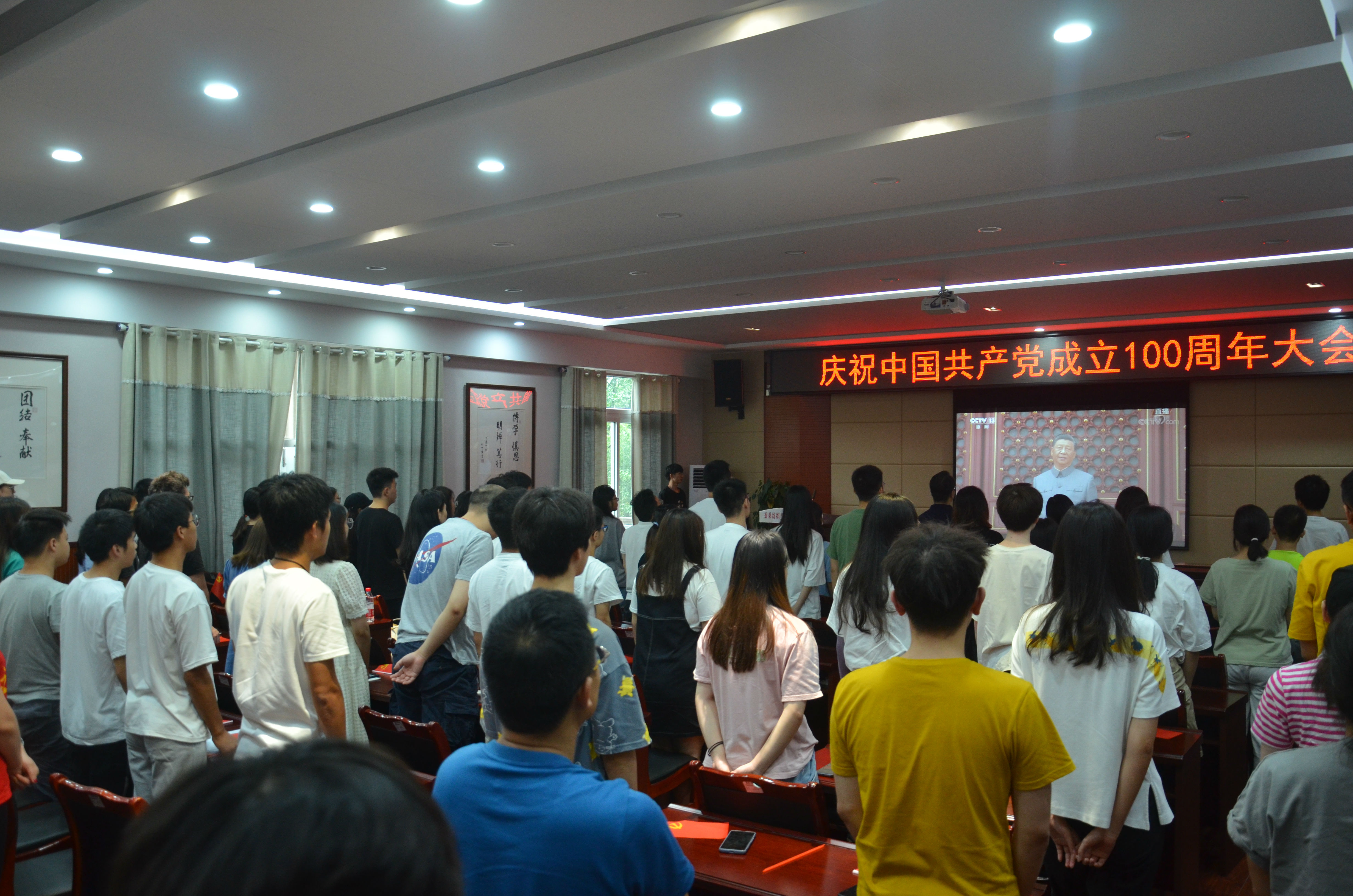 发布时间: 2021-07-05 10:16:07 已阅读:百年征程波澜壮阔,百年初心历久弥坚。7月1日上午8时,庆祝中国共产党成立100周年大会在北京天安门广场隆重举行,公司党委组织公司师生代表在第33教学楼306集中观看大会直播。公司党委书记张袁松、党委副书记曾鸣鸣、党委委员何宁佳、党支部书记查幸福、党委组织员秦瑒及公司师生代表100余人参加集中观看。