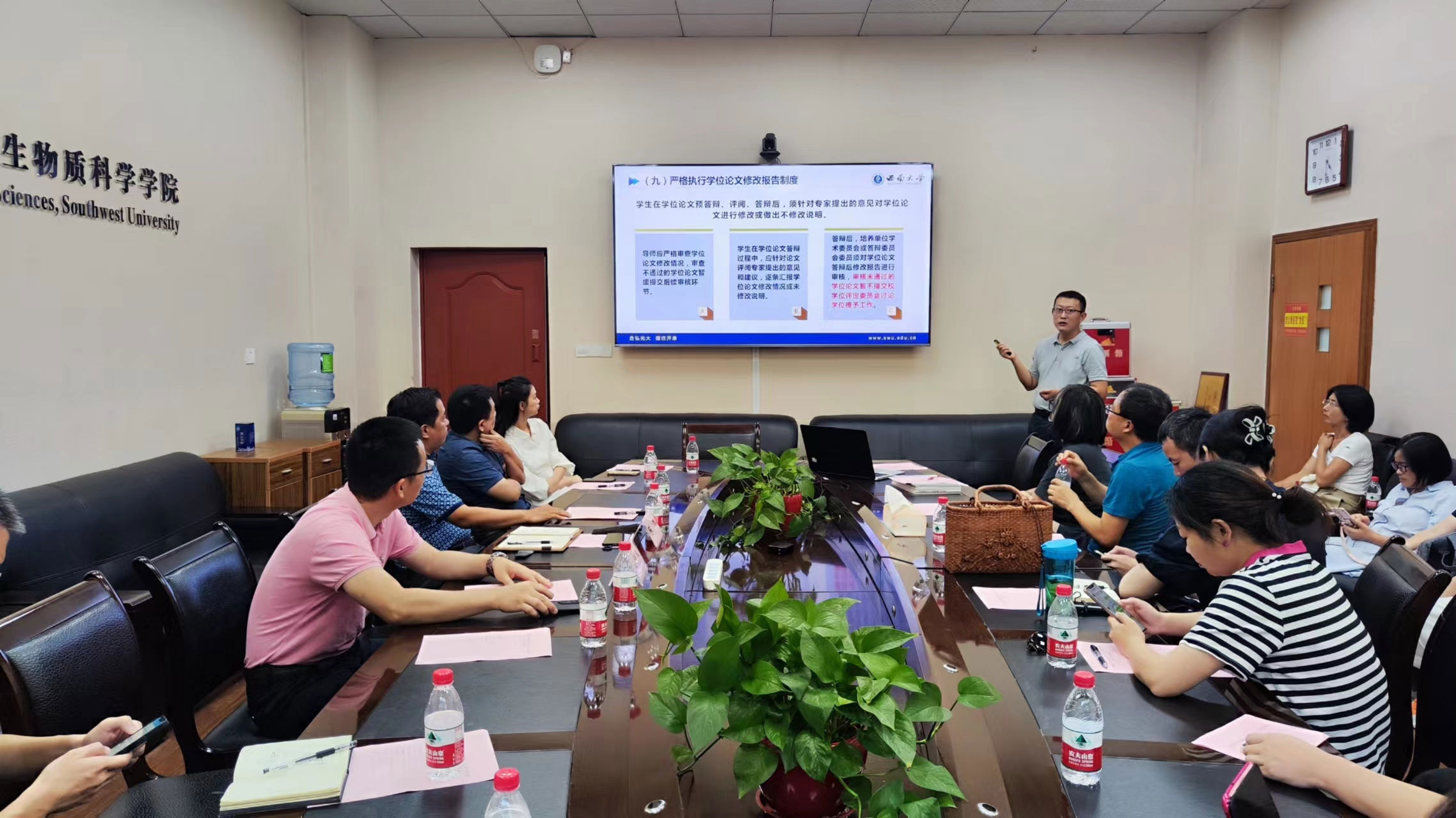 发布时间: 2023-09-26 09:11:00 已阅读:为推进公司产品过程精细化、科学化、规范化,提升公司产品质量。9月14日下午,公司在33教106会议室召开2023年秋季学期研究生导师培训会。公司研究生院学位管理办公室陈洋主任、公司副经理蓝广芊、全体研究生导师、研究生教学秘书参加会议。会议由蓝广芊副经理主持。