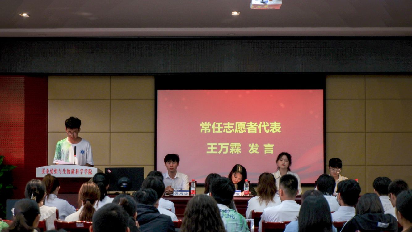 常任志愿者代表王万霖同学发言。王万霖同学提到自己喜欢团结和谐的工作氛围,表示对未来老员工活充满了信心。