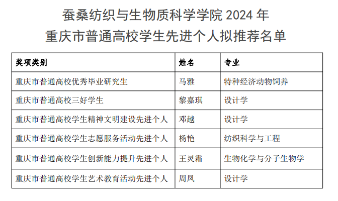 关于2024年伟德BV1946官网优秀毕业研究生及重庆市普通高校员工先进个人拟推荐名单公示